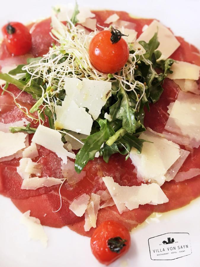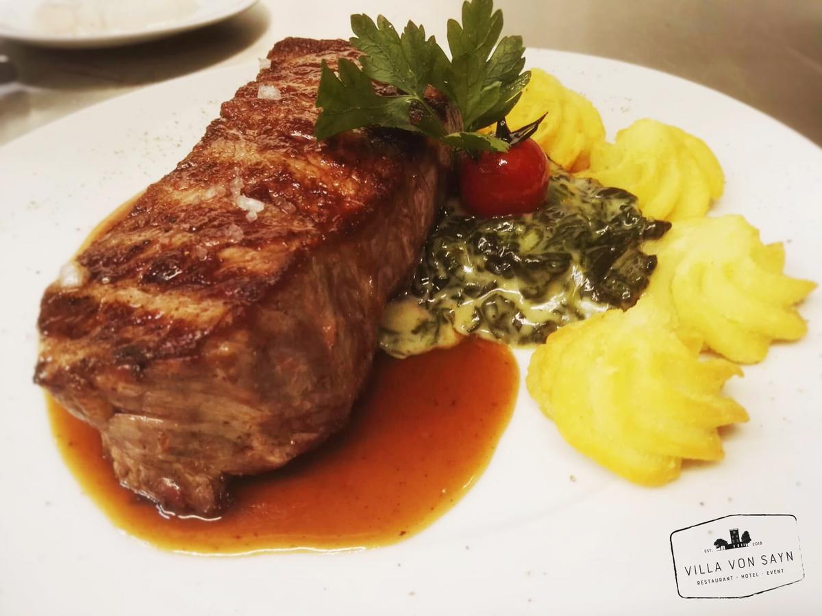 Im Restaurant wird neben gutbürgerlicher auch internationale Küche zelebriert. Der hübsche Biergarten der Villa von Sayn lädt zu entspannten Momenten ein.